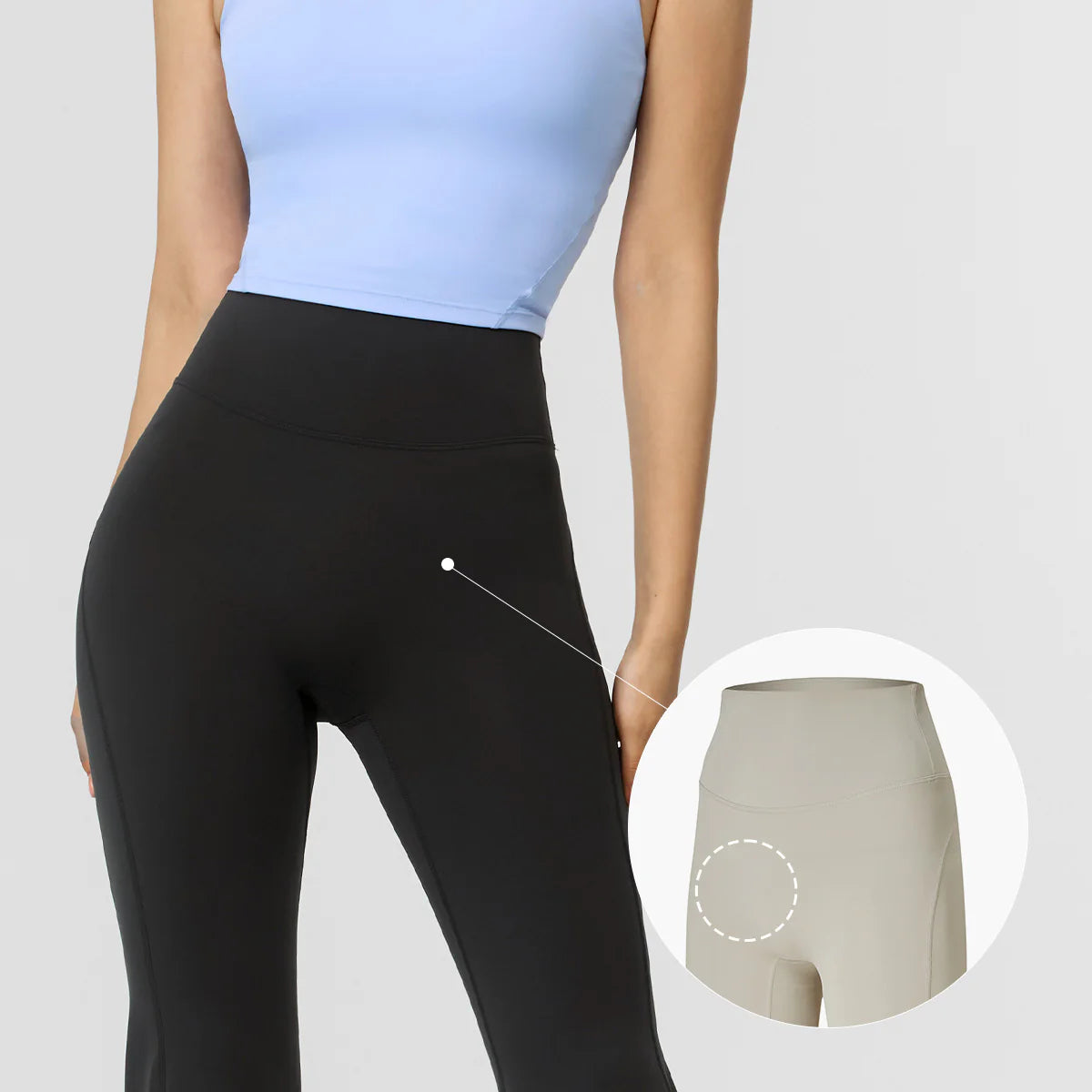 The waist line seam line has been removed to gently wrap the abdomen without putting pressure on it.