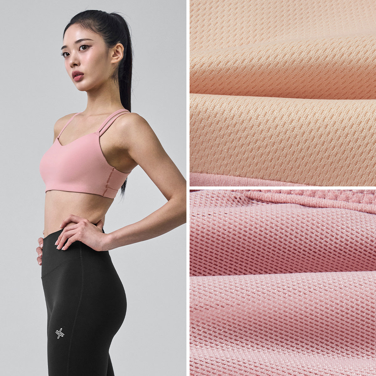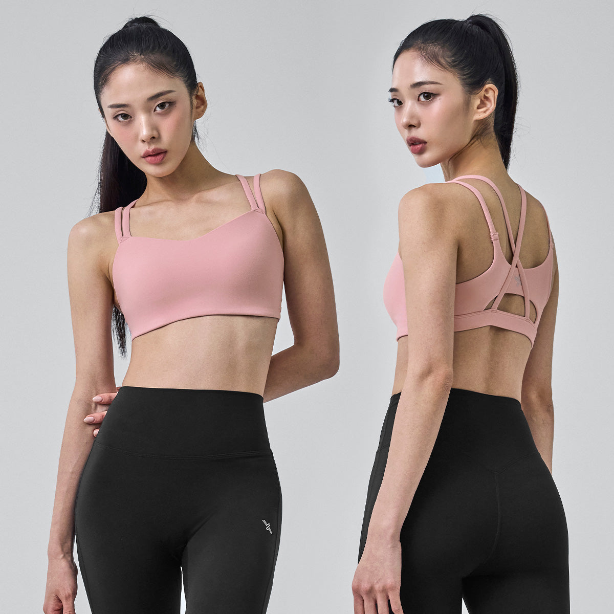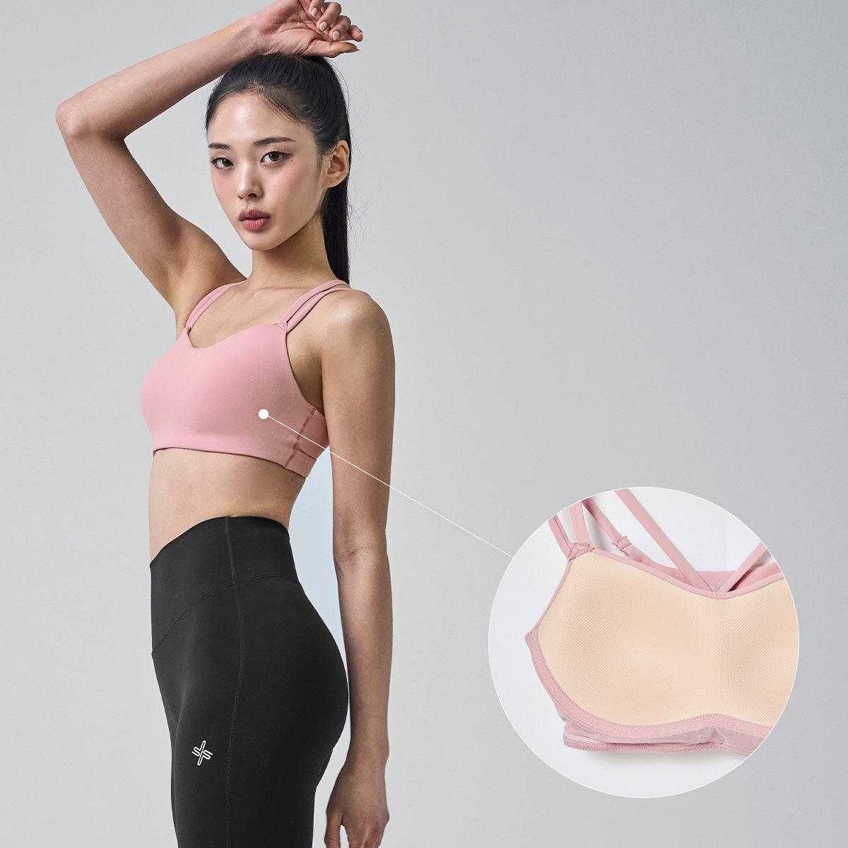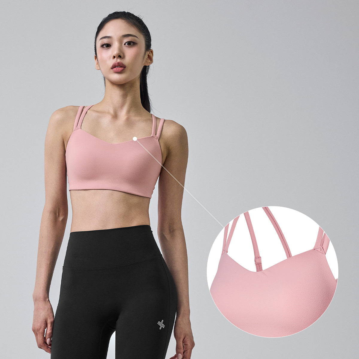 The cross-over design along the shoulder line and back provides support and prevents sagging. The cutout detailing enhances breathability.