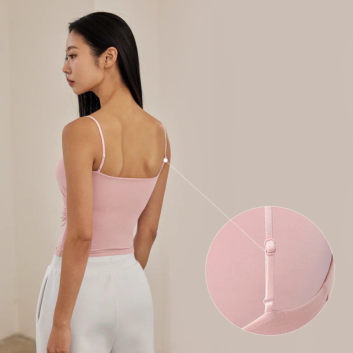 The thin yet sturdy shoulder straps feature adjustable rings, allowing for a secure fit tailored to your body while adding a delicate, graceful touch.