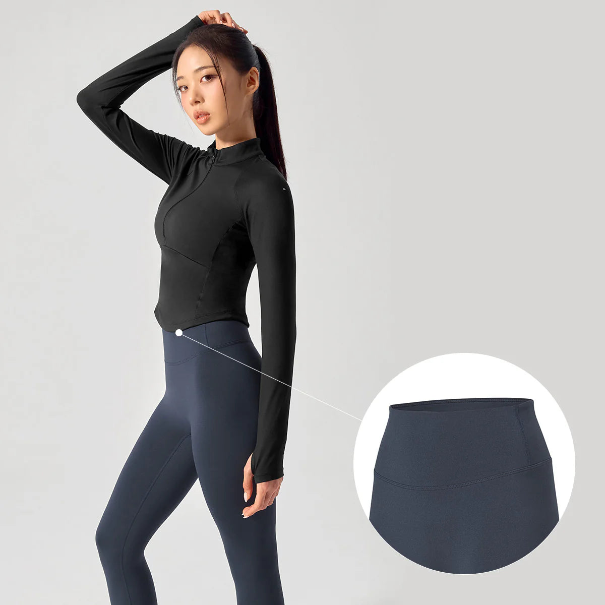 By removing the center front seam and using a downward-pulling pattern, the Y-zone line is minimized, allowing comfortable wear even during active movements.