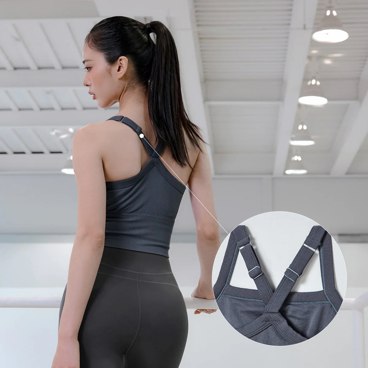The V-shaped strap back creates a sleek look while allowing easy observation of back muscle movement during exercise.