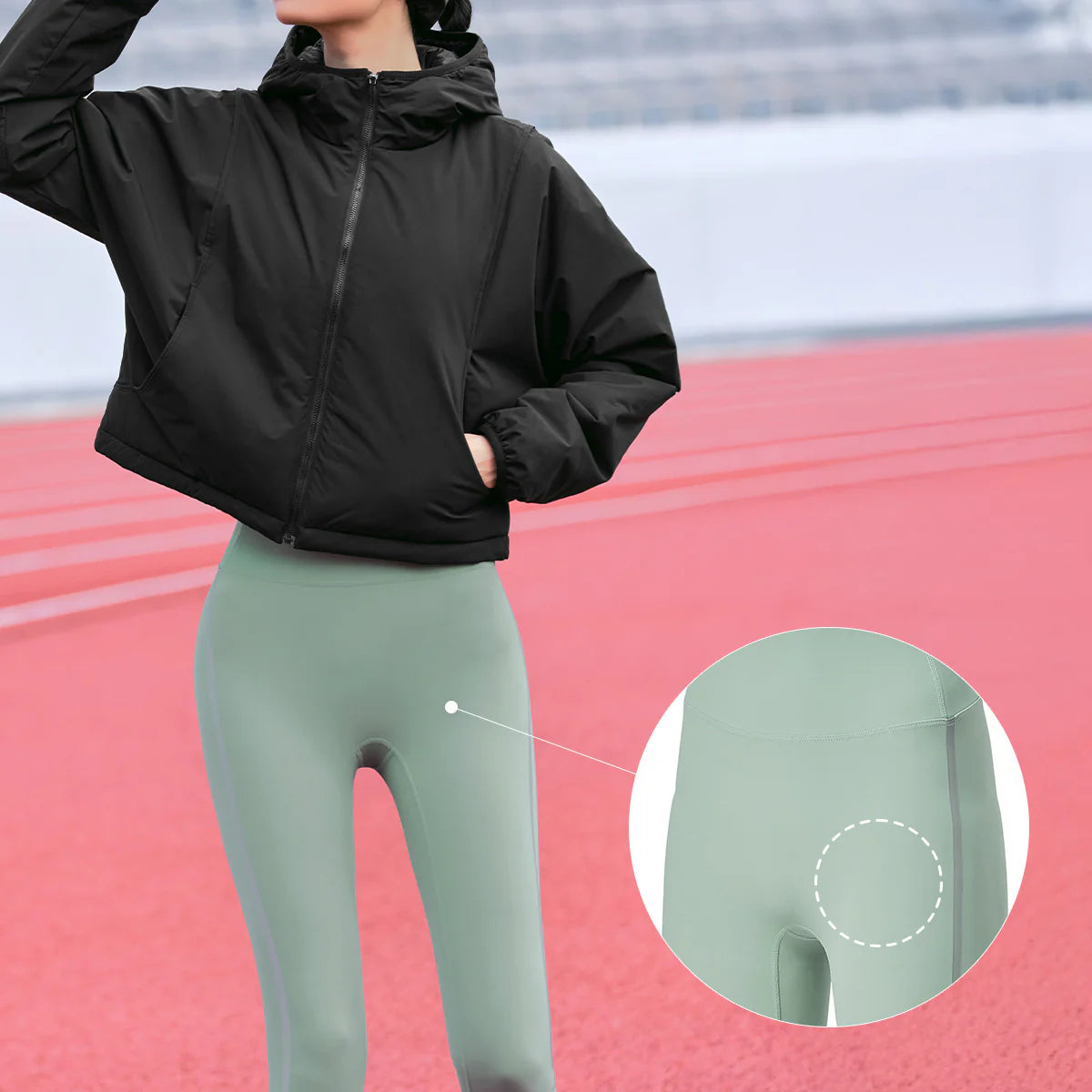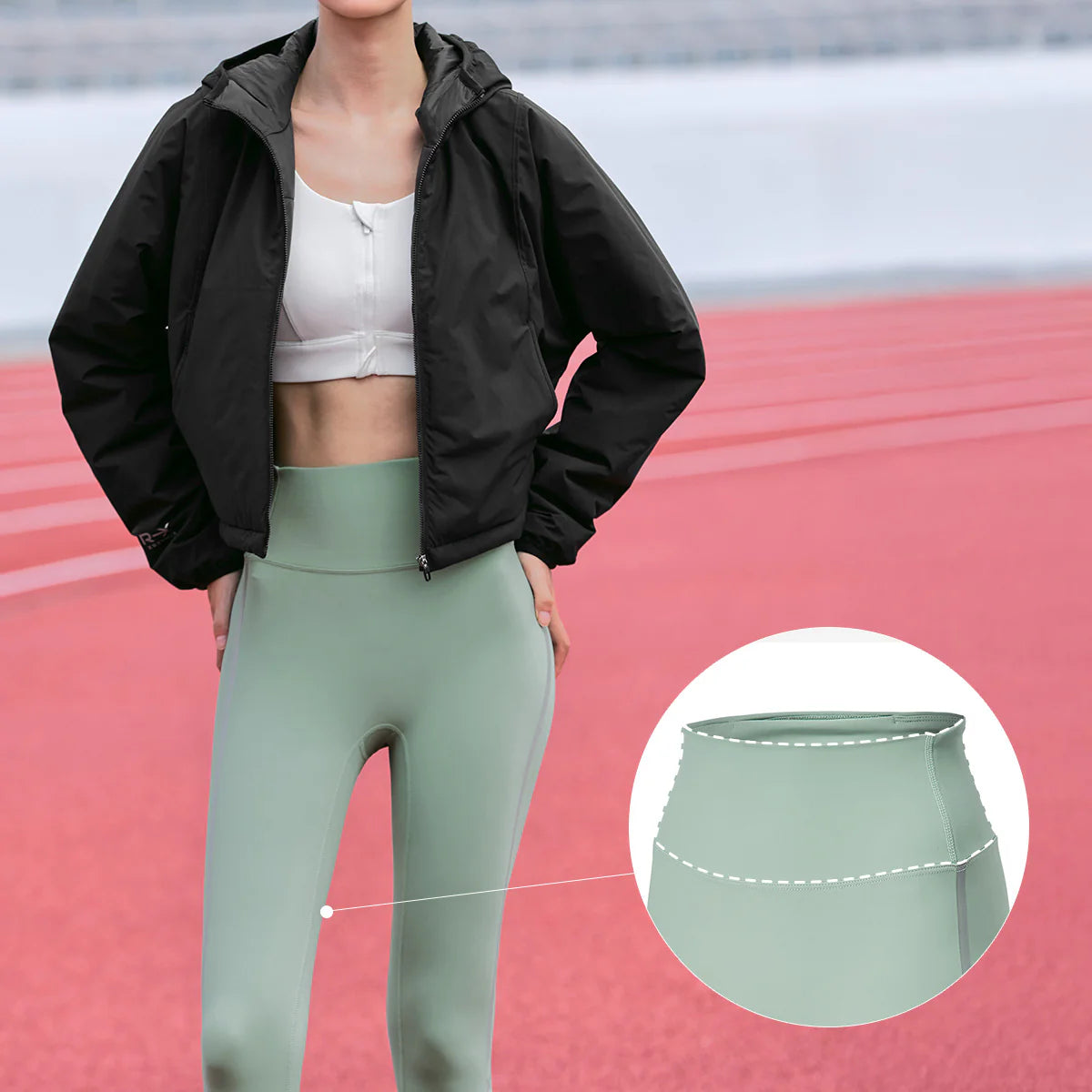 Designed without a front center seam to eliminate unnecessary emphasis and deliver a sleek, comfortable fit—perfect for pairing with cropped tops.