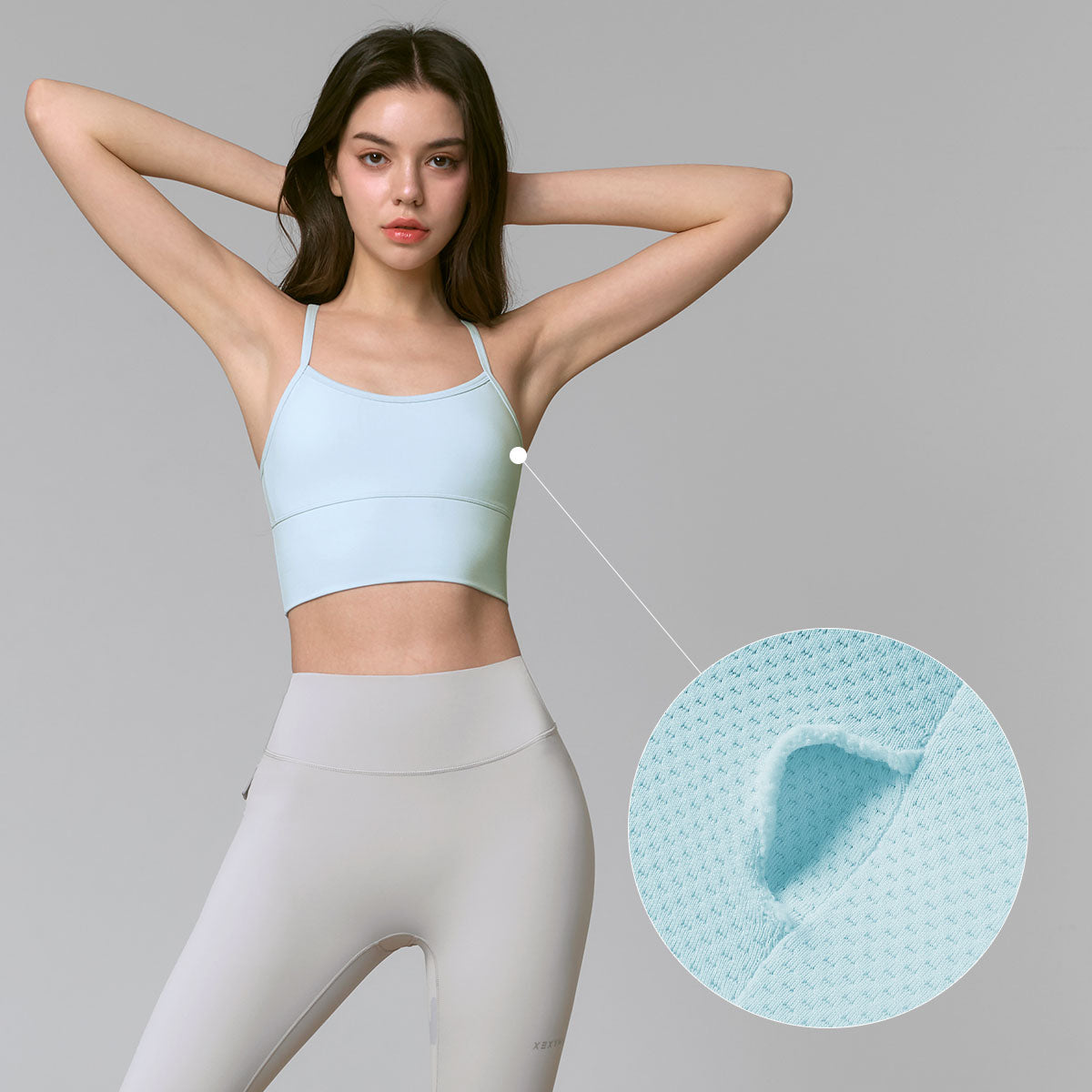 The bra lining that touches the flesh is made of mesh fabric to absorb sweat quickly and show a pleasant fit and excellent ventilation.